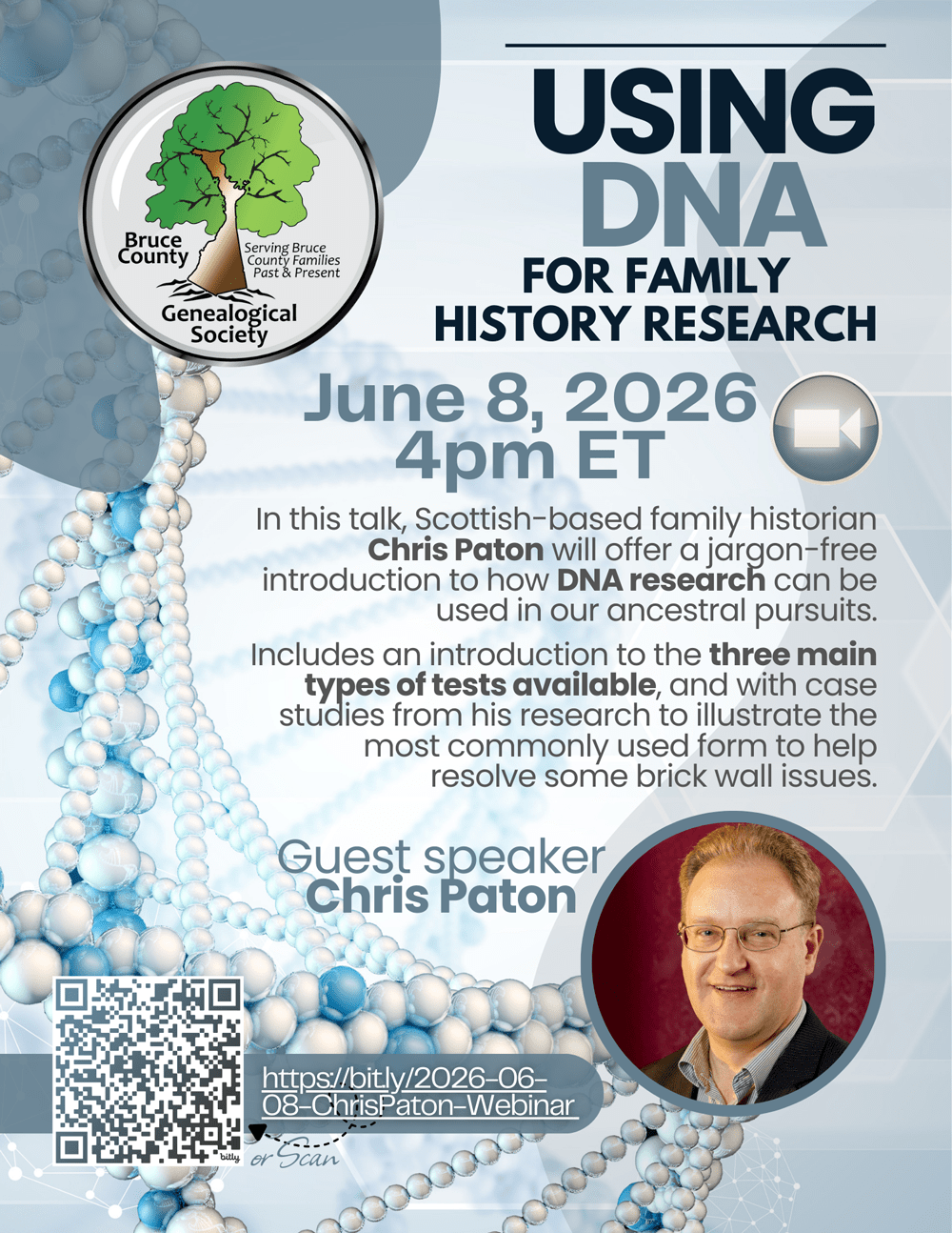 Using DNA for Family History Research, With guest speaker, Chris PatonRegister HERE: https://bit.ly/2026-06-08-ChrisPaton-WebinarNOTE Time: 4pm ET