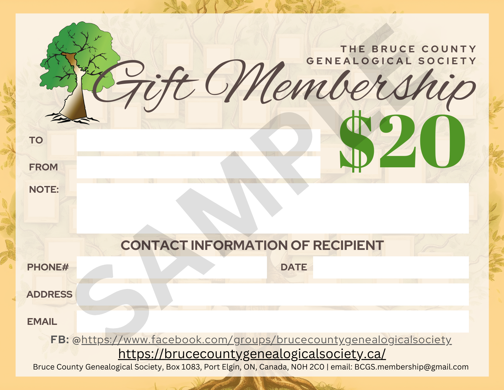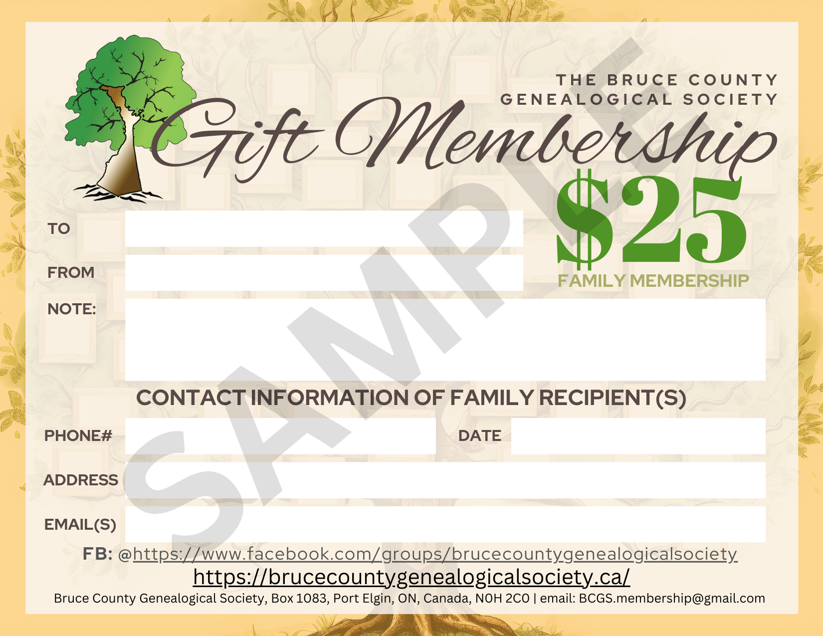 Looking for the perfect gift? π Our gift memberships for the Bruce County Genealogical Society are now available! Itβs the ideal gift for anyone interested in uncovering their family story. πβ¨
