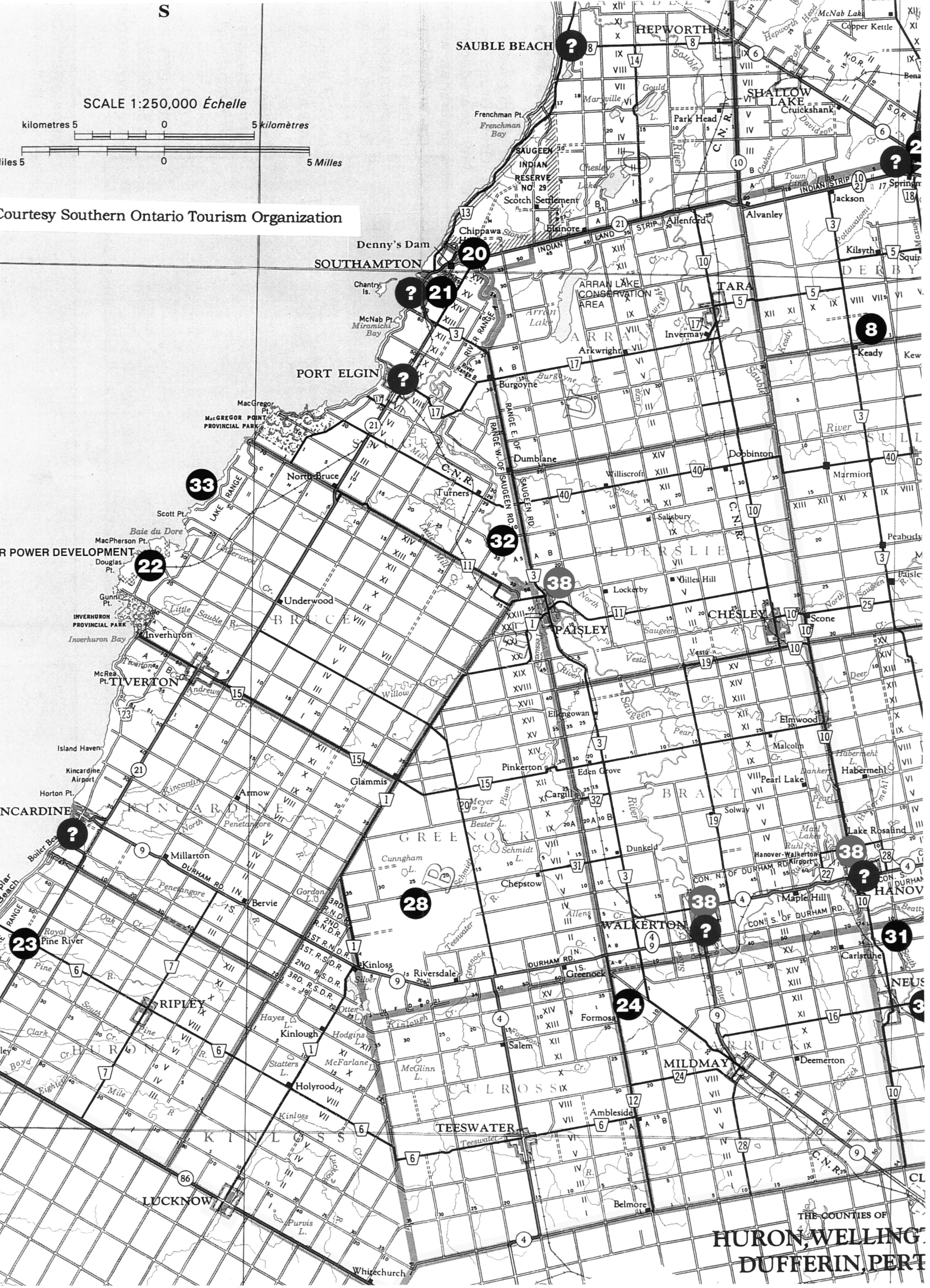 Bruce County Genealogical Society wishes to express sincere thanks to Southern Ontario Tourism Organization. They granted permission to use the Bruce County portion of this Grey – Bruce Visitors Map. This map shows details such as the concession roads and township boundaries before the 1998 amalgamation. It also highlights towns and villages of Bruce County. These features make it a valuable tool for everyone doing genealogical research in Bruce County. Map Links: Bruce County North Bruce County South
