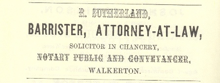 Robert Sutherland, born about 1834 in the West Indies, was the first Ontario lawyer of African ancestry. He was a barrister and attorney in Walkerton. He died in Toronto in 1878.