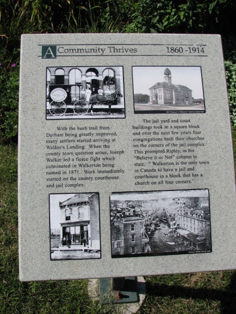- Walkertonย –ย Its first settler was Joseph Walker, who arrived in 1850. Its post office, originally called ‘Brant’, was established in 1852. In 1865 Walkerton became the County Town for Bruce County.